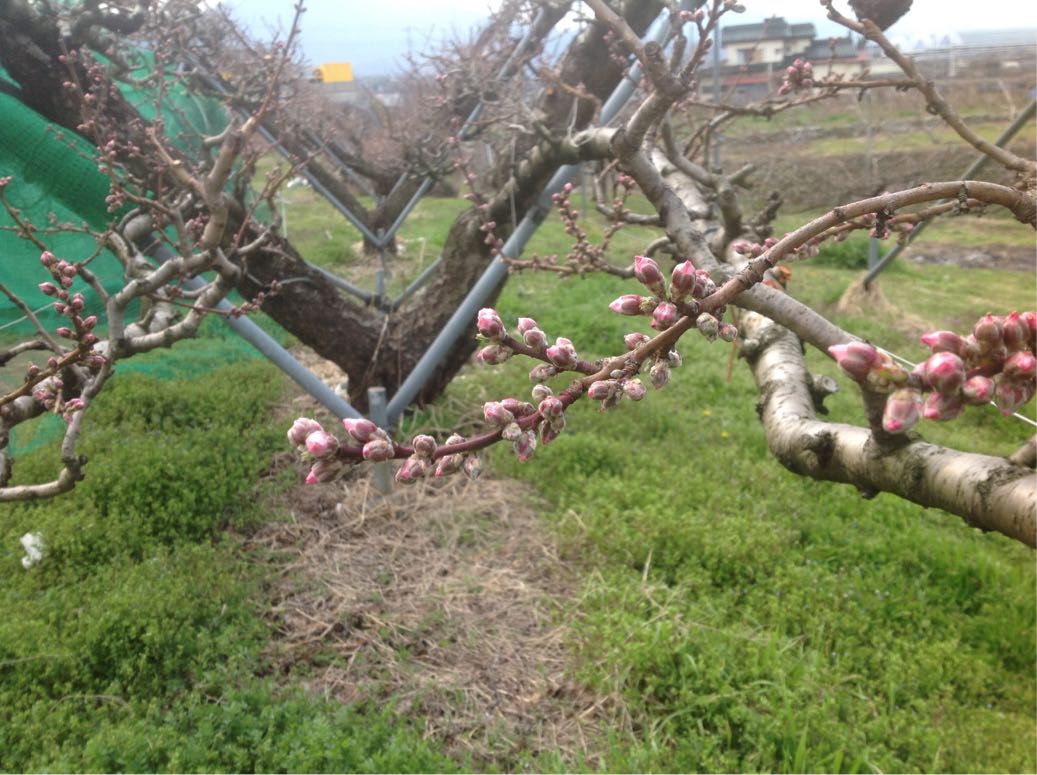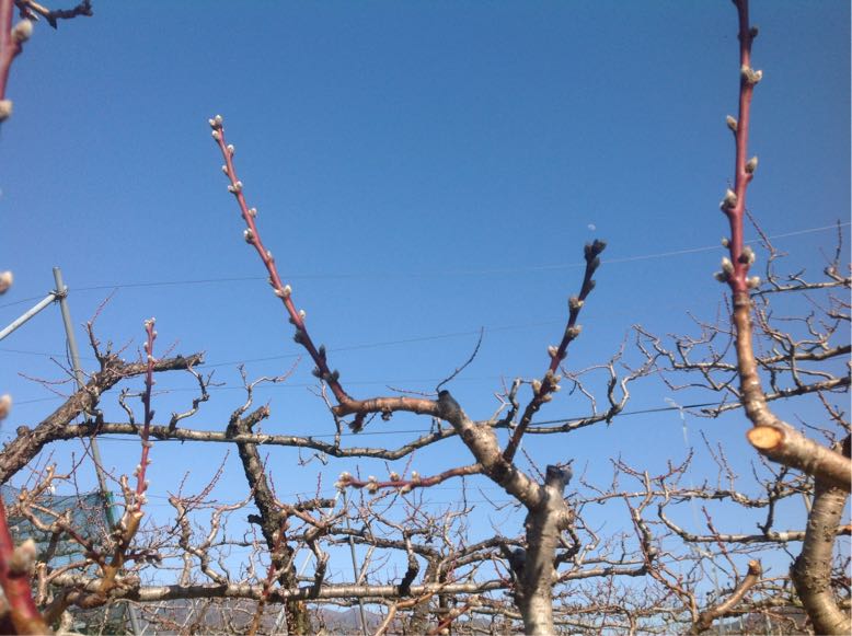 陽射しも暖かくなり、桃の蕾も少しずつ膨らんできています。