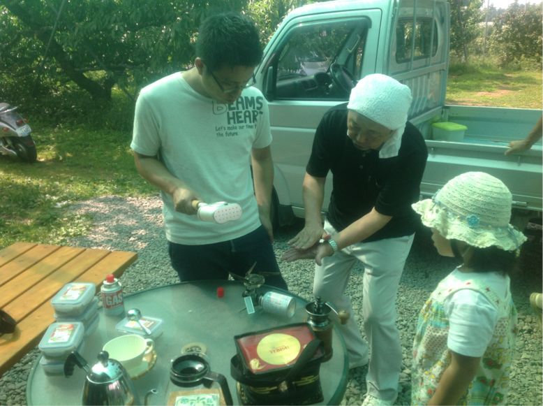 午前中ぶどう狩りの後、桃の木オーナーの鈴木様にコーヒーを入れて頂きました。