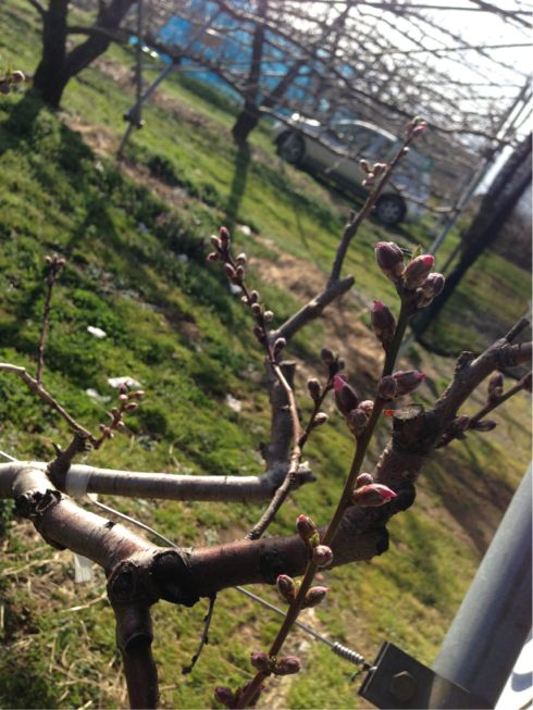 最近暖かい日が続いているので、桃の花の開花予想がかなり早まりました(>_<)