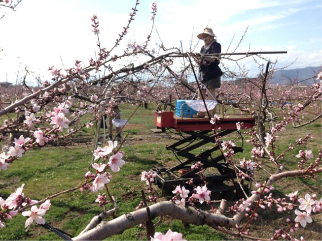 またこの「Y字栽培」を採用したことで、 ブロックを明確に分けた「オーナー制」が実現しました(^^) これまでも桃の木のオーナー制は存在しましたが、桃の木1本では成る実が多すぎるのです(^^;)